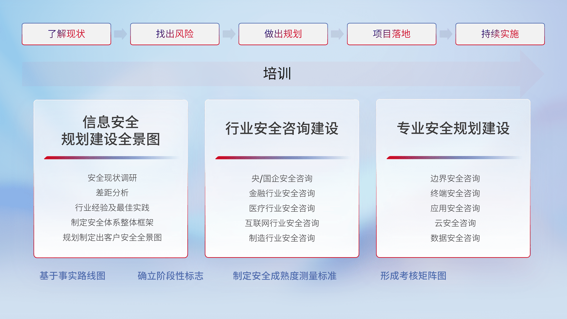 通过专业的法律咨询解读、、合规架构体现、、差异化解决方案、、、、测试实施支持等服务,,为客户量身打造等保合规体系。。